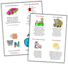 We love rhymes and songs, so these mini-books are a favorite of my just-turned-Three. In this free printable book you’ll find six rhymes for letter W.