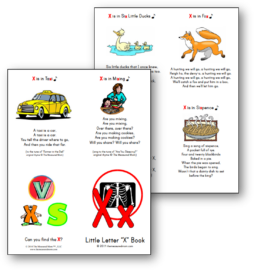 Please forgive me for not filling the letter X book with words that begin with X. Xylophone doesn’t exactly teach the sound of x, anyway. Instead, the mini-book’s rhymes mainly consist of words that have x within them.