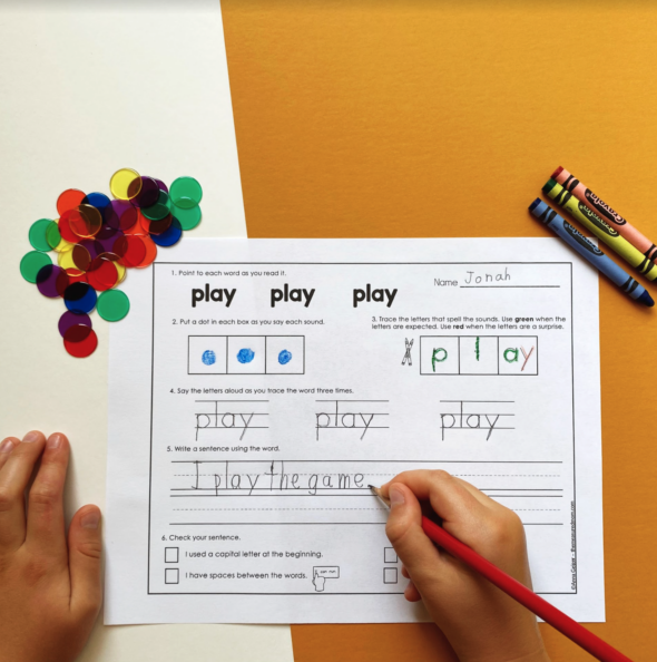 - Avoid worksheets that have boxes for writing the letters of different heights. I’m sure you’ve seen them – they’re everywhere. But time and again, I’ve heard reading experts say that this is pointless. It promotes memorizing words as wholes, and that’s NOT how the brain learns to read.