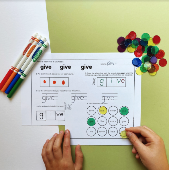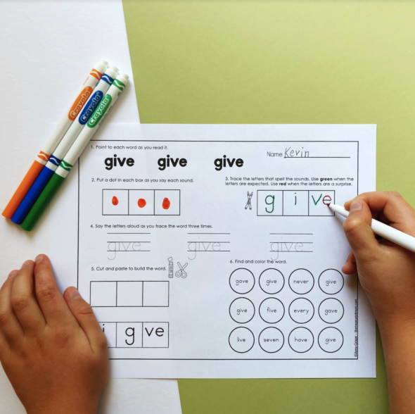 - Choose worksheets that call attention to the irregular parts of the word (if there are any).