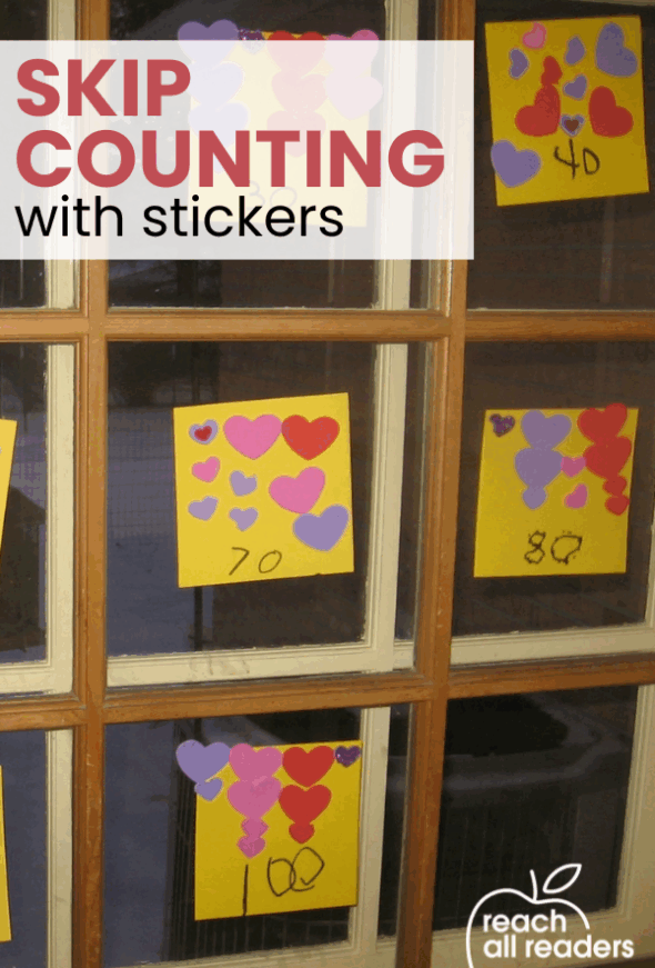 We took out our supply of foam heart stickers. Because everything is more fun with stickers. It’s also a sure way that I will get all of my kids to abandon their toys in the playroom and join me for some math.