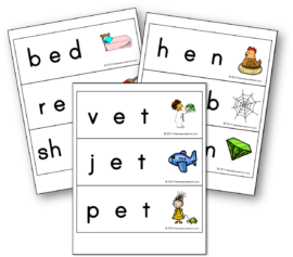 After your child masters these, mix them up with some other sets. Then he’ll get used to really focusing on those short vowel sounds, which can be a little tricky.