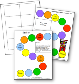 2) Take turns reading the top card to the other player. The other player must spell the word correctly to be able to roll the die and advance. Optional: The other speller can write the word and then read the spelling aloud. This might be the best option for young spellers.