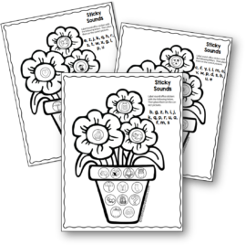 Simply print the “sticky sounds” page of your choice. Then write the featured letters on round office stickers.