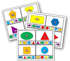 My Three knows the names of the basic shapes, but not with consistency. I created these clip cards to help him find matching shapes and provide an opportunity for us to talk about their names.