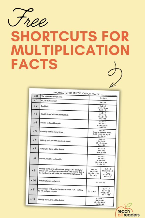 Get your free shortcuts for multiplication facts!