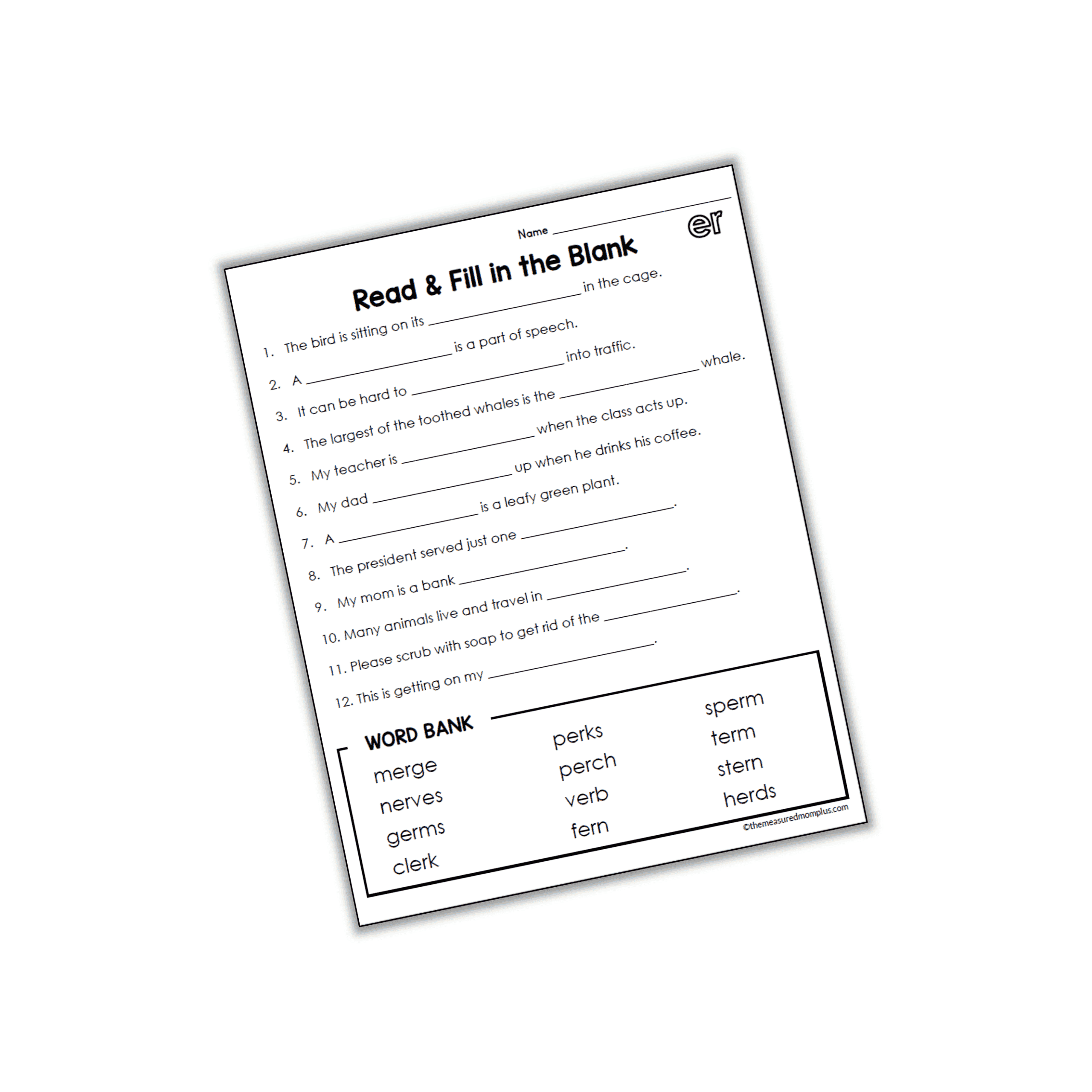 Read and Fill-in-the-Blank Worksheet for ER words Join our email list to get this FREE fill-in-the-blank for er words!