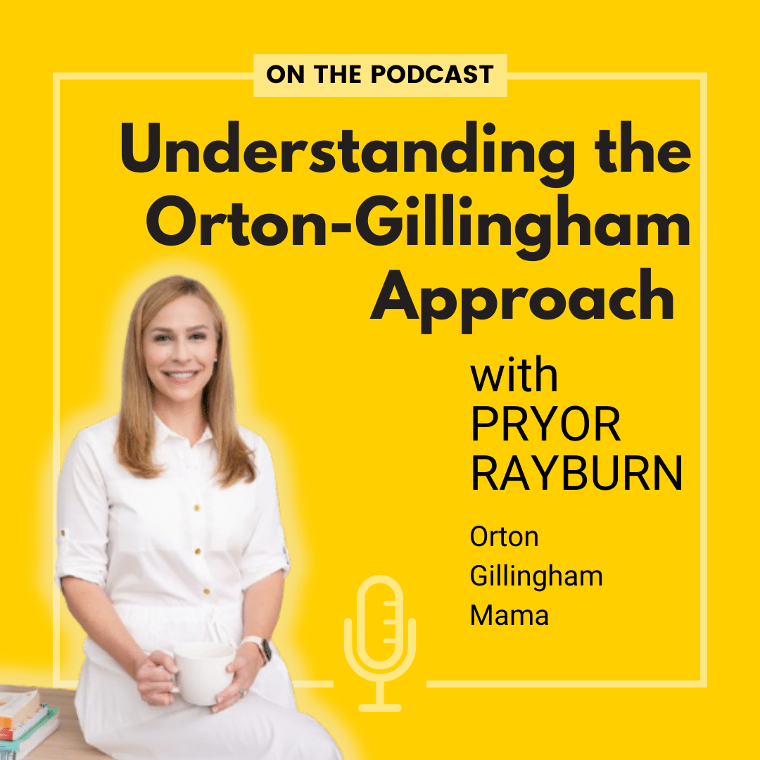 Pryor Rayburn, a teacher and Fellow in Training with the Orton-Gillingham Academy, shares education resources through her website, The Orton Gillingham Mama. In today’s episode she explains the principles of Orton-Gillingham, discusses what elements are not yet supported by research, and shares an effective routine for teaching those tricky function words (the, was, what etc.) that often trip kids up (spoiler alert: it’s all about meaning!).
