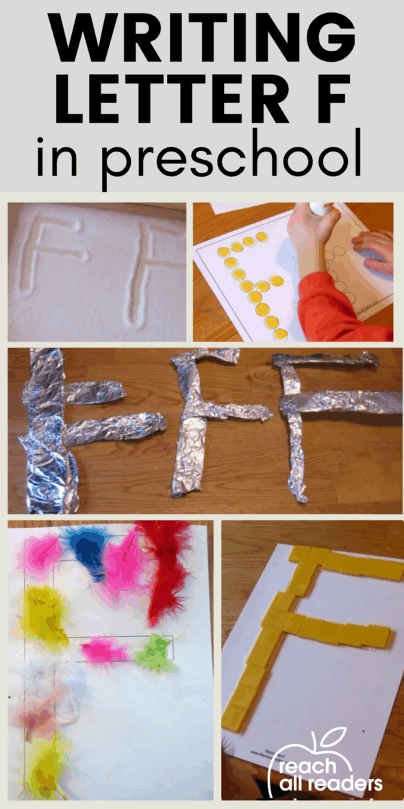 I tore off sheets of foil for the older kids (4 & 5) to make their own letter F. I showed them how you can squish the foil together so that it stays together. This was frustrating for my Four; I won’t insist on that next time.
