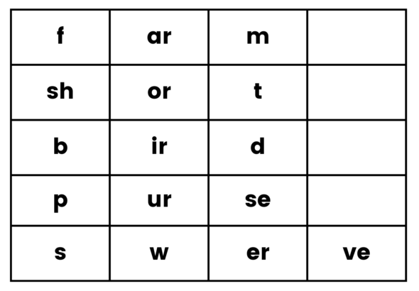 Important: when counting phonemes (individual sounds) in words, count an r-controlled vowel as a SINGLE sound. It feels a little weird to do that, but it’s common practice in traditional phonics programs.